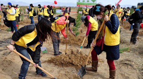 2013年植树活动场景2013年参与植树活动志愿者合影留念