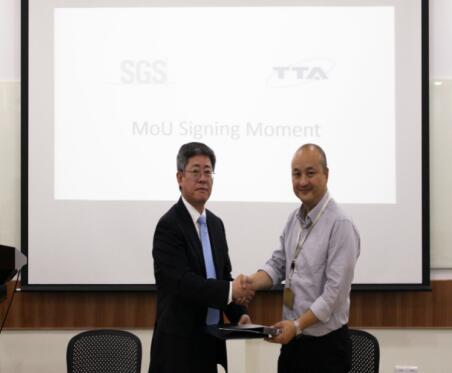 SGS消费电子产品事业部总监赵晖先生(右)与韩国TTA总监Woong Jang先生(左)现场签约