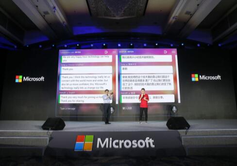在微软人工智能大会上,昊旻与沈向洋进行了现场对话。基于 Microsoft Translator 打造的微软语音服务,专门针对昊旻的声音特点定制了语音识别模型,能够以极高的准确度将他的语音实时转换成文字,还能同步翻译成英语或其它语言,从而真正实现了无障碍沟通。