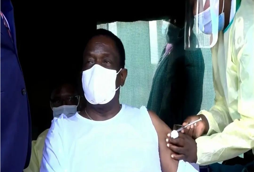 △姆南加古瓦接种克尔来福®(图片来源:津巴布韦国家电视台)