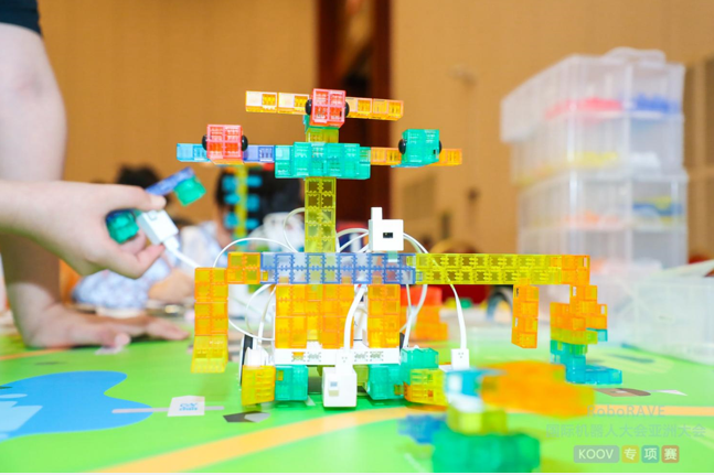 KOOV专项赛以“创意搭建+完成任务”为主要挑战形式,以“森林救援”为挑战主题,小选手开启了一场惊心动魄又瑰丽奇幻的浪漫冒险。比赛采取团体挑战赛模式,分为高、低年级组,共计70支队伍的191名小选手参与了此次比赛。