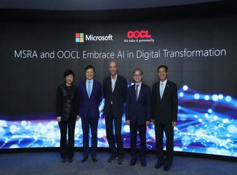 2018 年 4 月 23 日,香港——微软亚洲研究院 (MSRA) 与东方海外航运 (OOCL) 宣布展开合作计划,通过应用人工智能 (AI) 研究,改善航运业网络运营,以提升效率,并会在未来一年培养超过 200 位人工智能开发人才。