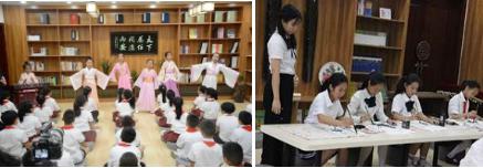 厦门天安小学的孩子们向来宾兴致勃勃地展示了国学精粹。吟诵《百家姓》,以载歌载舞形式展现古典诗词的魅力。闽南语社团的孩子,用方言吟诵古诗;国学剧社团老师和孩子们以自编自演的方式让历史人物变得鲜活起来。来宾们纷纷赞叹孩子们精彩的表演,期待着孩子们在这间国学教室里得到经典的浸润、茁壮成长。
