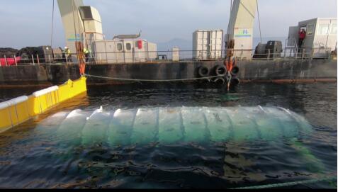 *Natick 项目的北部岛屿数据中心在苏格兰奥克尼群岛沿岸下沉到 117 尺深的岩板海床,实现完全淹没。微软的 Natick 项目是一项历时一年的研究工作,旨在调查制造、可持续运营、预先打包的数据中心单元的可行性,这些数据单元可以根据尺寸来订购、也可以快速部署在海底默默地运行多年。(照片由微软提供)