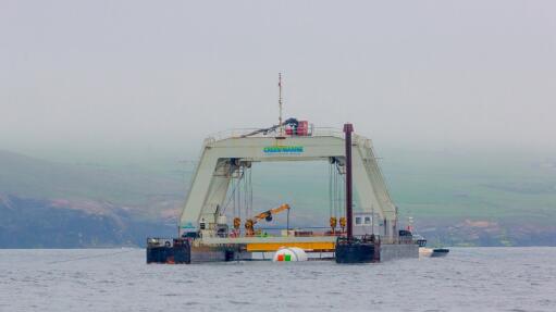当天最复杂的任务是一点一点把数据中心和电缆下沉到 117 英尺深的岩质海床上。船员们使用了 10 台绞车、一辆起重机、一艘龙门驳船和一辆远程操作汽车,配合数据中心的部署工作。