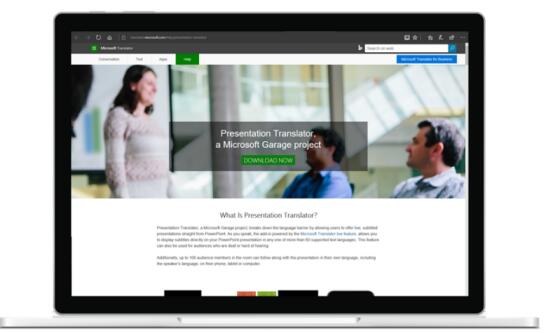 特别值得说明的是,AI 将被有机地融合到我们现有的产品和服务中,以增强它们的实力。举一个简单的例子,来说明 AI 是如何帮助我更有效地进行日常工作的。我经常去亚太地区出差,常常需要为跨国、多语种的观众进行演讲展示。现在,借助 Microsoft Presentation Translator 的 AI 技术,我可以克服任何语言障碍,因为当我演讲时,PowerPoint 可以用 60 多种语言同时显示实时字幕。