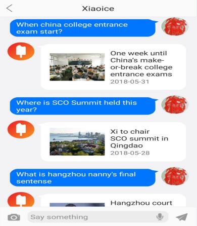 人民日报英文客户端与微软小冰对话界面